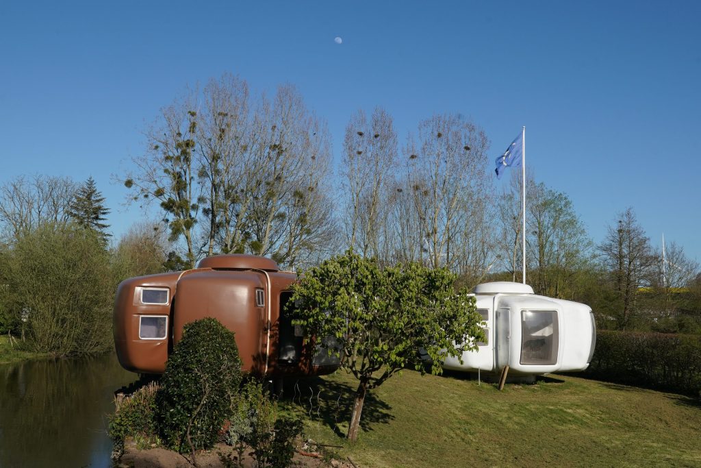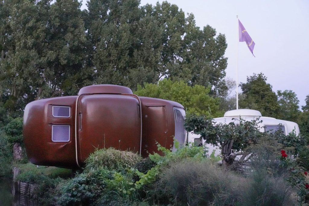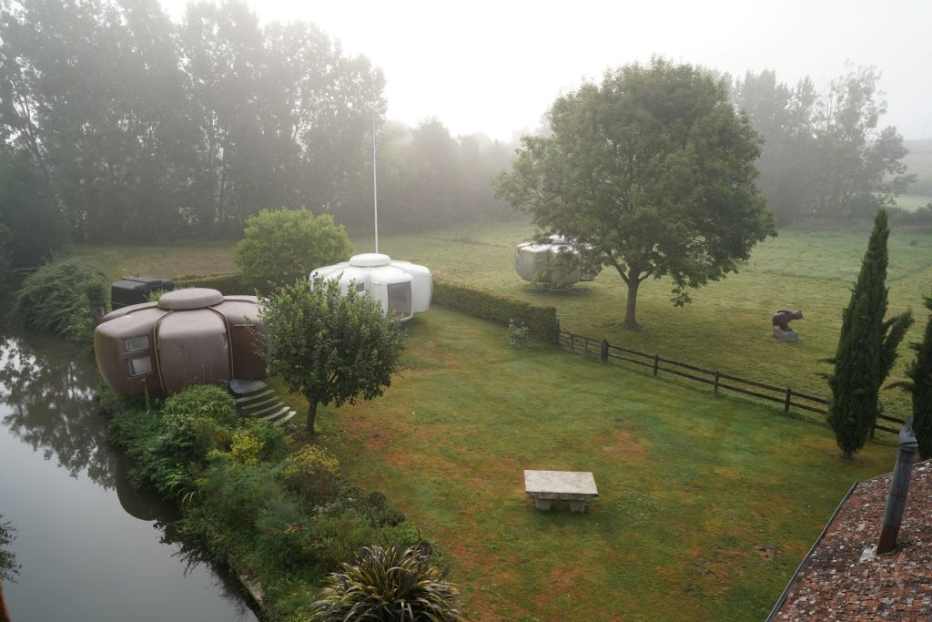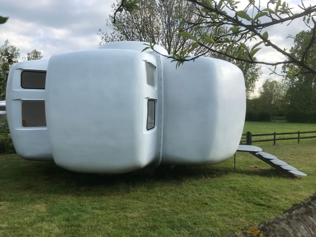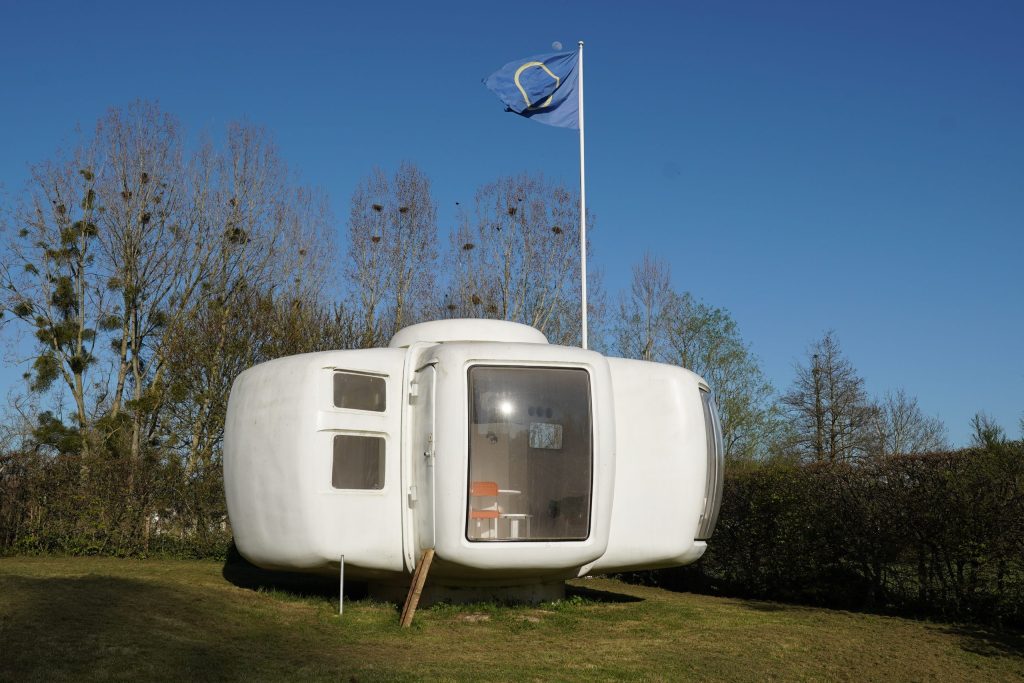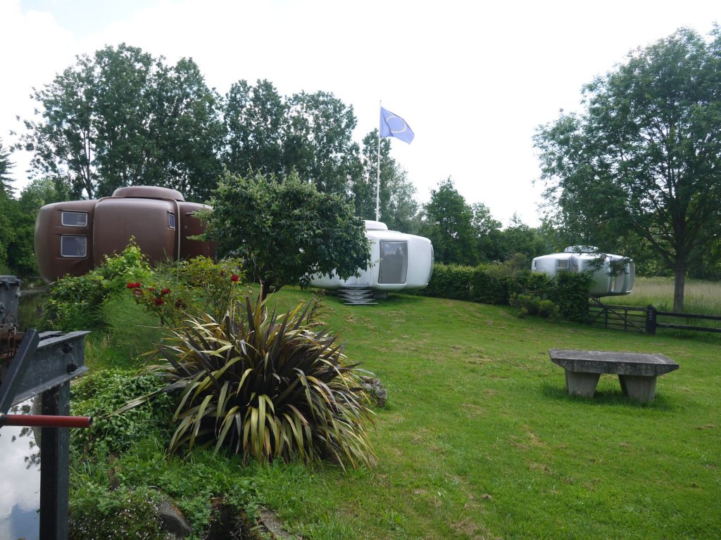 Ici à Piacé, le parcours d’art compte trois Bulles Six Coques : une bulle blanche (ancien accueil d’un aéroclub à Boos vers Rouen), une bulle marron et une bulle couleur métal (Ibai Hernandorena).