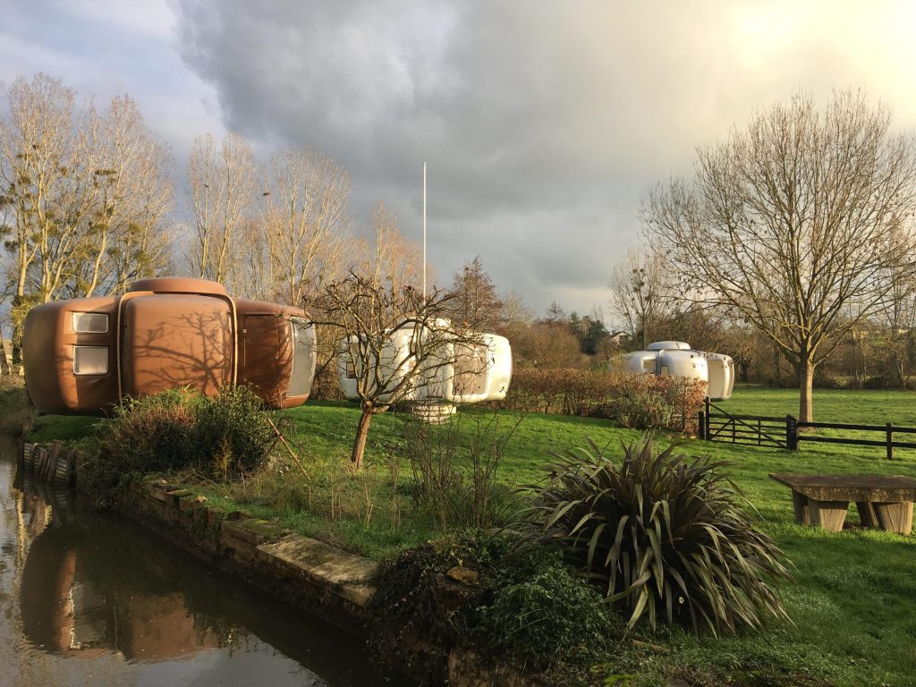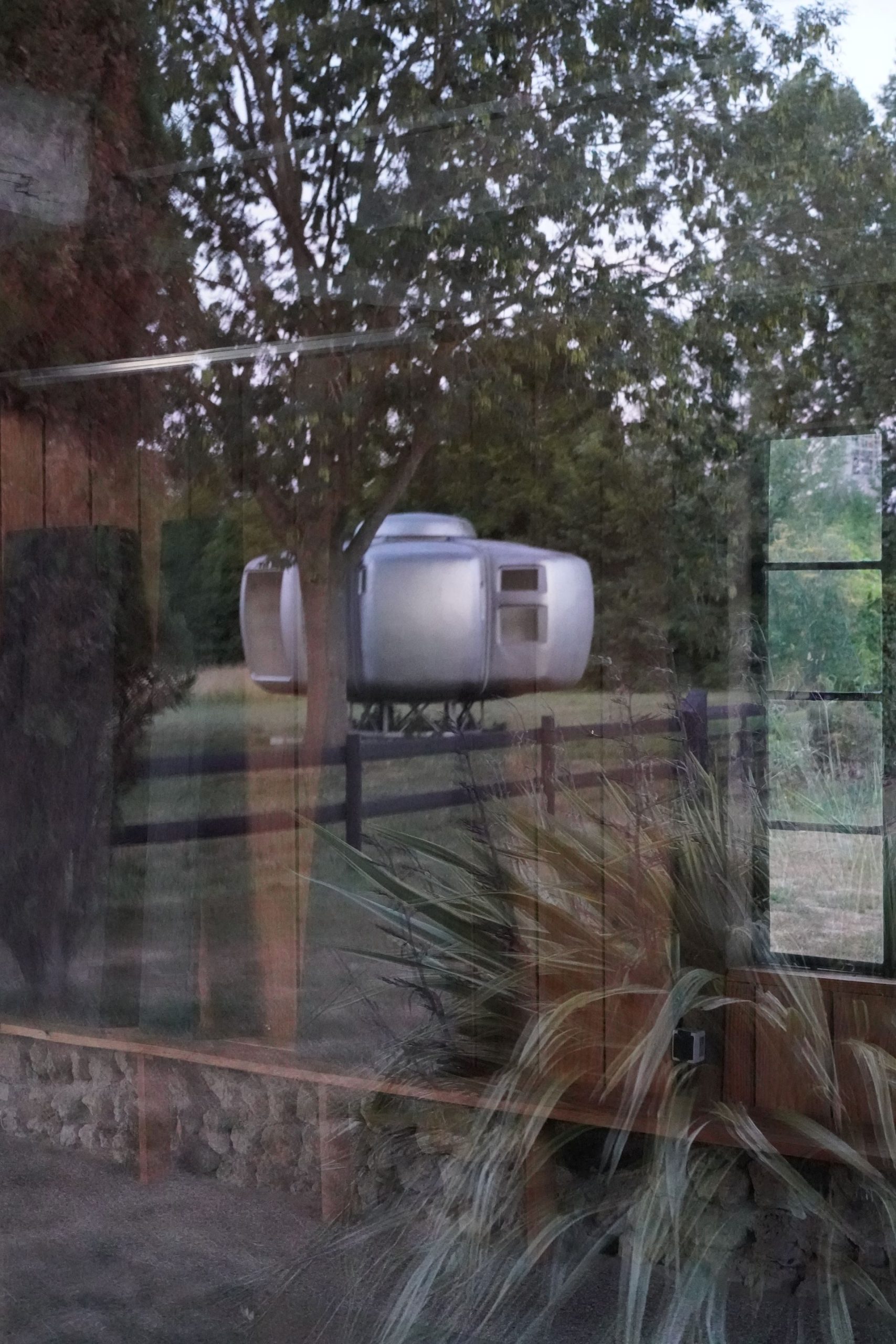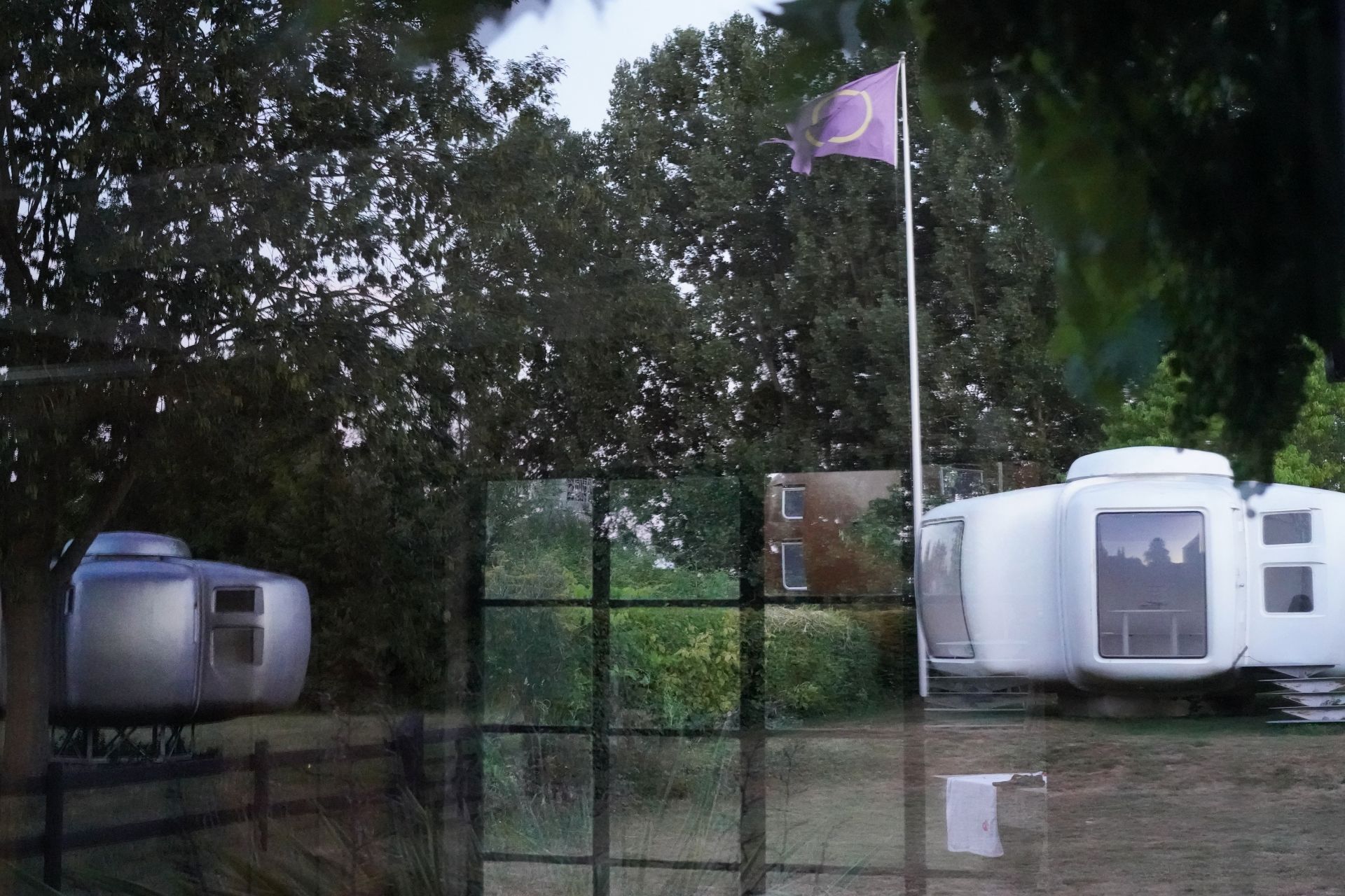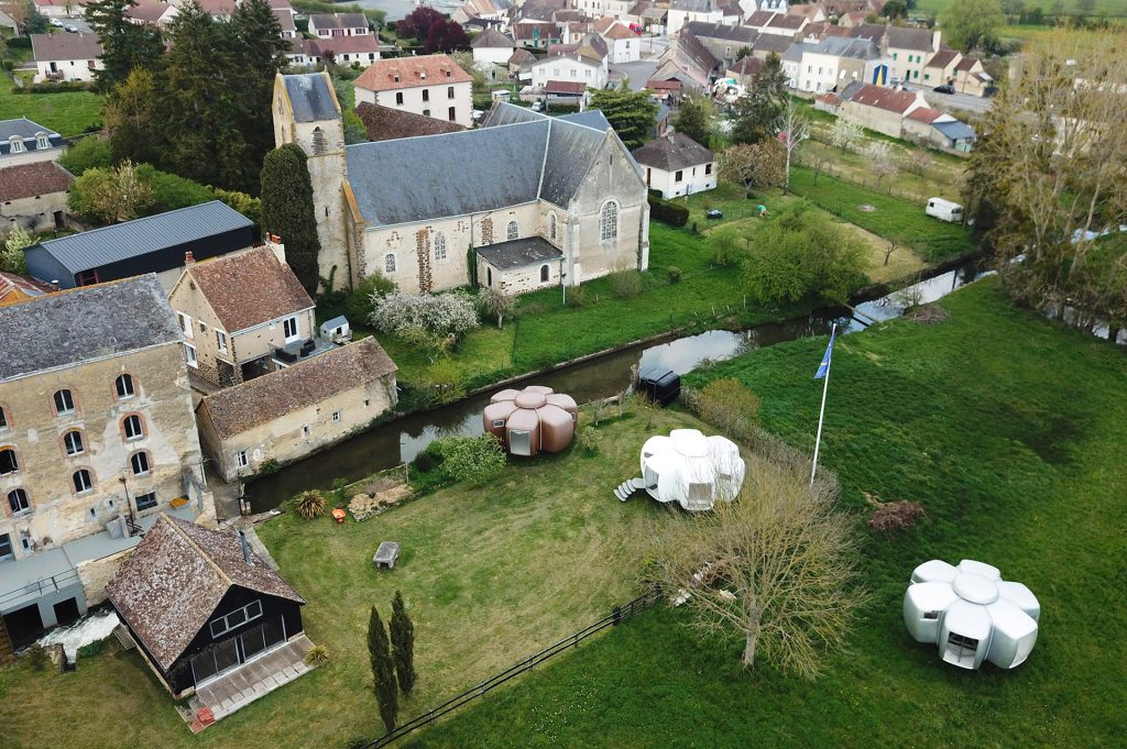 Ici à Piacé, le parcours d’art compte trois Bulles Six Coques : une bulle blanche (ancien accueil d’un aéroclub à Boos vers Rouen), une bulle marron et une bulle couleur métal (Ibai Hernandorena).