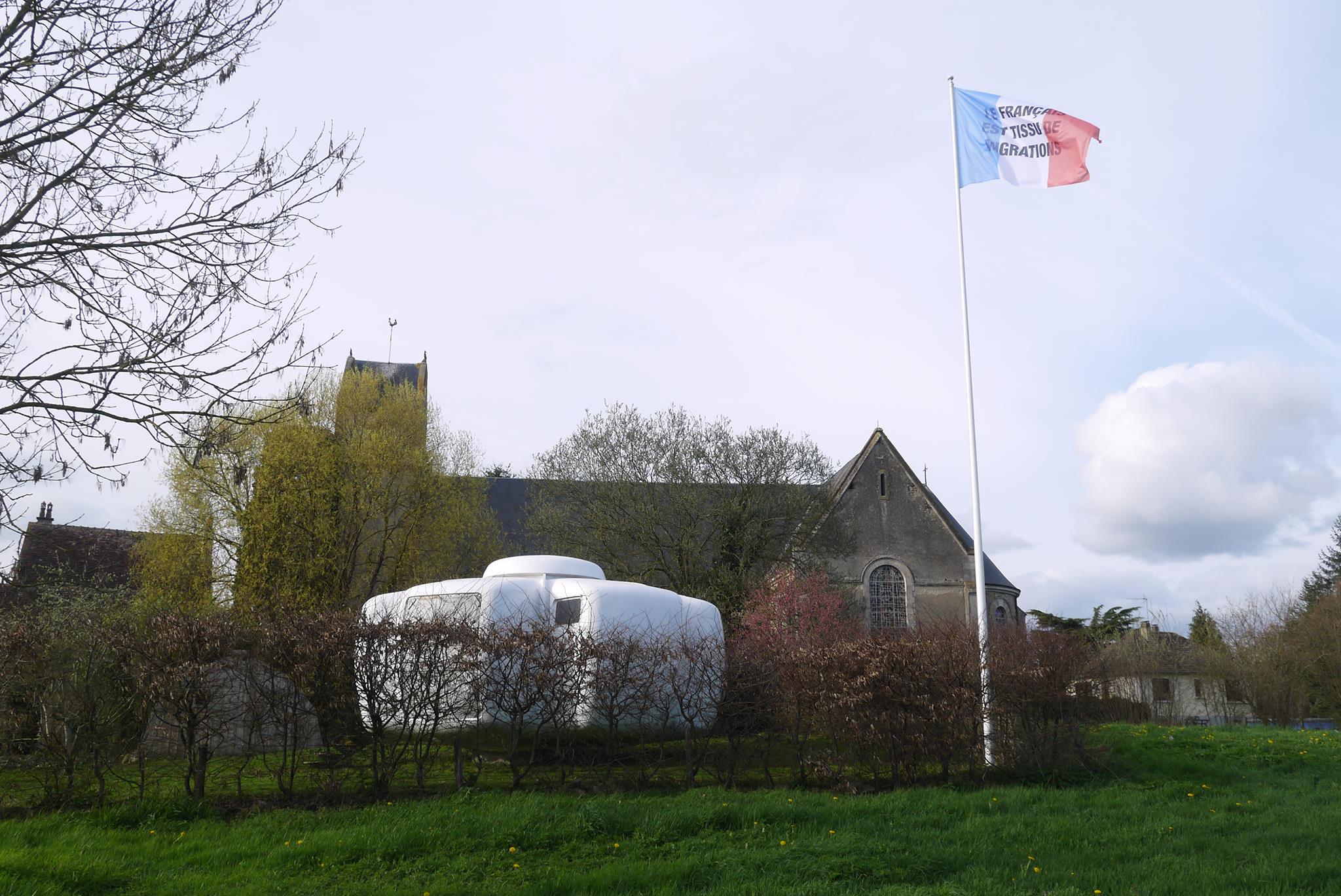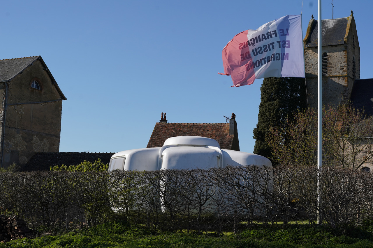 « Pour le drapeau produit à Piacé le Radieux, il s’agit de se demander ce qu’est « le français ». Et le français est tissu, c’est-à-dire qu’il n’est pas seulement « issu », mais aussi comme l’étoffe dont est fait le drapeau. C’est parce qu’au cours des âges, des millions de gens se sont croisés, et autant d’occasions se sont succédées de dire les choses – de les penser, d’entendre quelqu’un dire quelque chose, de ne pas se comprendre, de devoir préciser les choses – que le français en tant que langue, et en tant que lien d’un groupement qui s’appelle la France, s’est constitué. »
