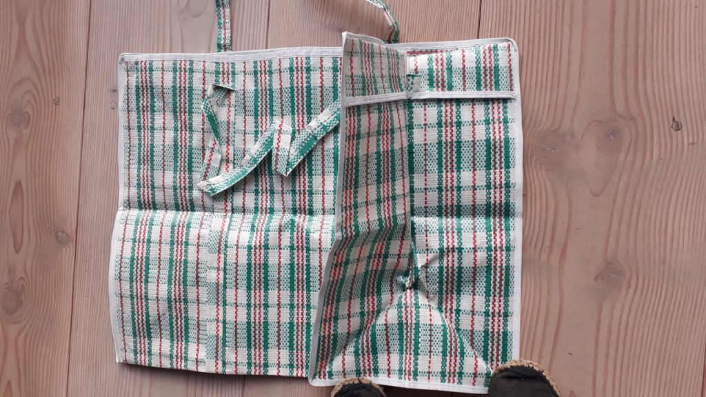 Elle est composée d’un ensemble de sacs de transport dits “d’immigrés” et de terre. Faisant directement référence aux flux migratoires les sacs évoquent la condition des populations contraintes de quitter leur terre natale. La figure du déraciner prend alors ici tout son sens tout comme la notion d’intégration qui sera la conclusion de l’oeuvre au terme de son installation.